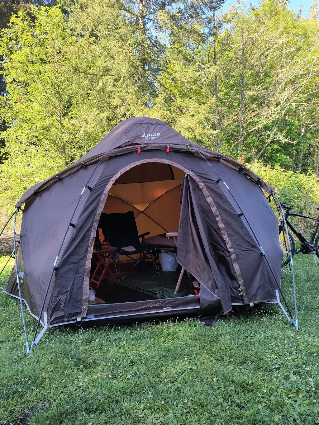 The Hercules is a large free standing dome hot tent - perfect for cold weather car camping. Sleeps up to 6 (without stove), comes with a stove jack and a removable floor. The Hercules has three fully screened doors - one by the stove and two additional doors for easy access.